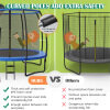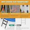 ● Hot-Dip Galvanized Steel Frame: The frame of this outdoor trampoline all adopts hot-dip galvanized steel pipes with advanced double-sided galvanization technology for higher wear resistance and rust resistance. Besides, the additional paint coating is added to leg pipes for even better abrasion resistance and corrosion resistance.