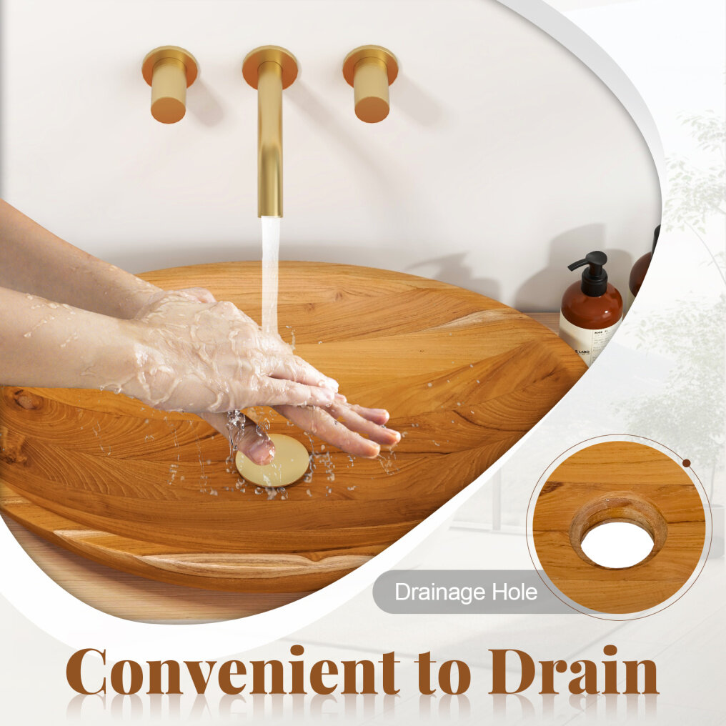 ● Convenient to Drain: The wooden washbasin features a drainage hole with a 2.5" diameter to ensure quick drainage. It is compatible with 5/8" drain openings. Tips: The drain opening is not included.