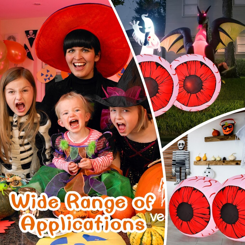 This 3 Feet 2-pack Halloween inflatable eyeballs are made of waterproof and fade-resistant polyester fabric with excellent stitching, ensuring long service life.
