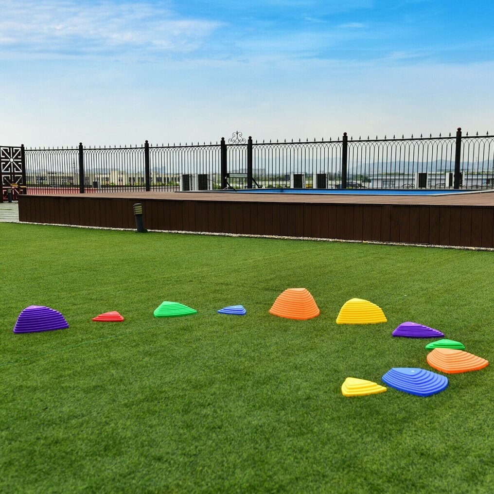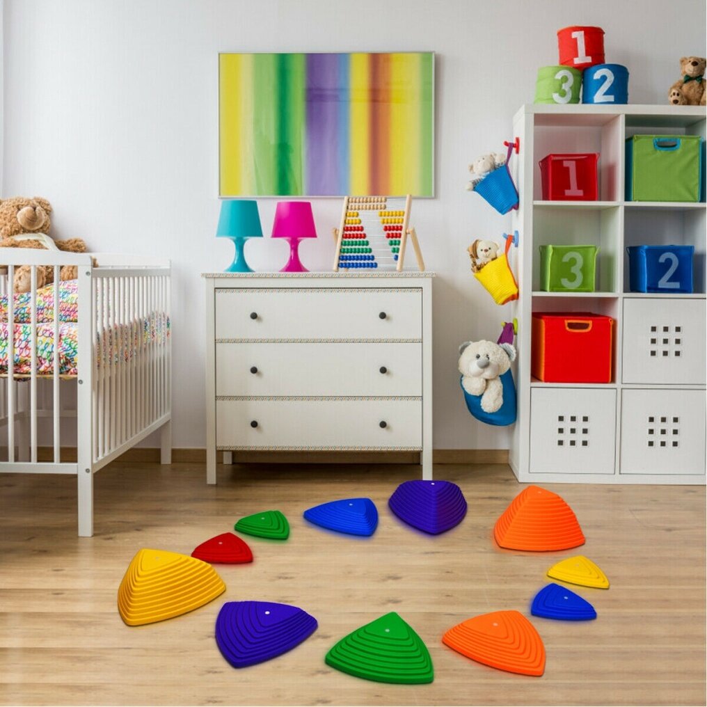 Imaginative Play:The toy set consists of 11 brightly colored stones of4 varying sizes that kids will love, and will provide kids with the opportunity to let their imaginationsrun wild as they experience various games and create new ones themselves. These stepping stones can be used in various settings, such as in kindergartens, playrooms, and in early learning centres.