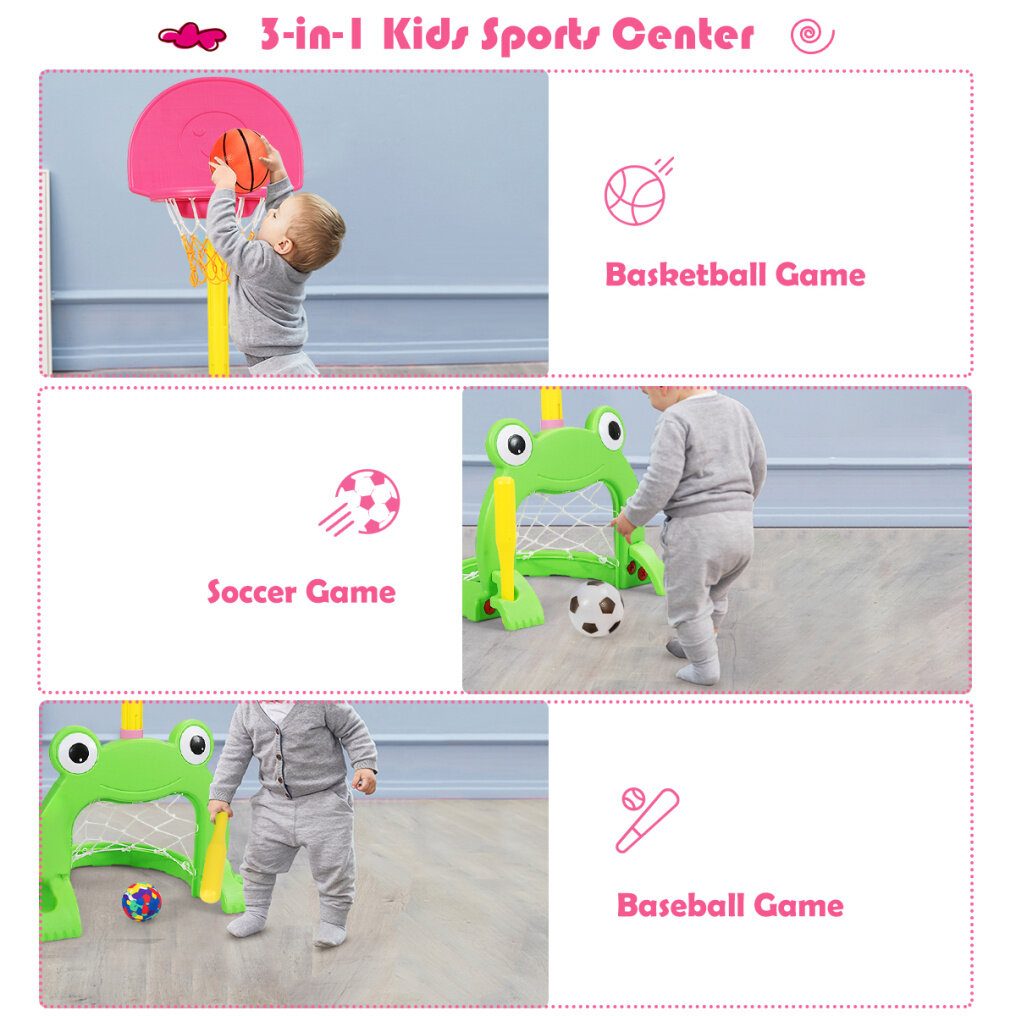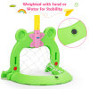 This kids basketball hoop set is made of high-quality HDPE, PP and PVC, which is non-toxic and tasteless. With the instructions, the set can be easily installed in a short time. The lovely appearance of frog can make kids fall in love with it immediately. There are 3 kinds of activities of this toy, including basketball, football and baseball, which give children more sport options. The kids 3-in-1 sports set can not only make children love sports, but also allow kids to learn to cooperate with friends in the playing. This is the best gift for your kids!