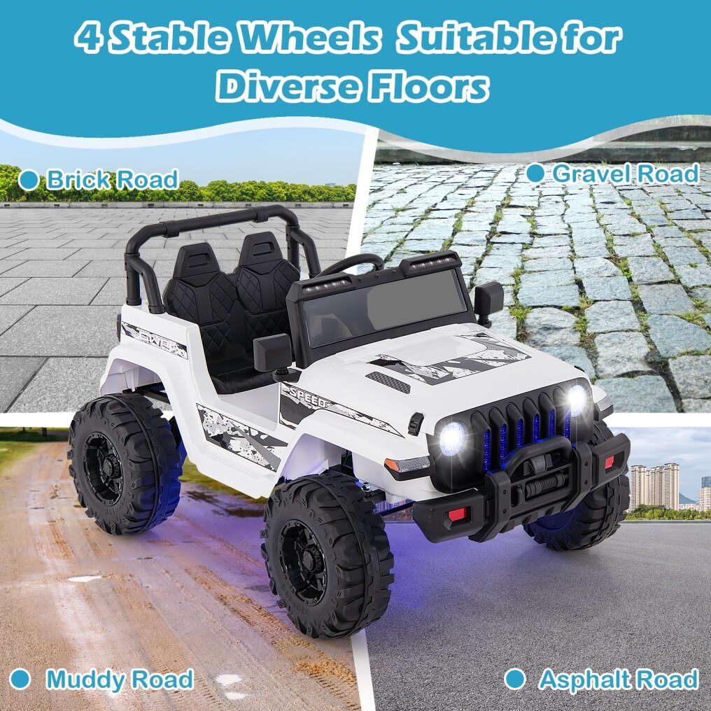 ● Unlimited Music Choices: This kids' ride-on car includes a multi-functional music player. This not only provides early education for kids but also makes driving enjoyable. In addition to built-in music, you can also use USB and FM radio. What's more, the electric car for kids also supports audio, you can play a child's favorite music. With various music and cool LED light effects, driving would be really fun.