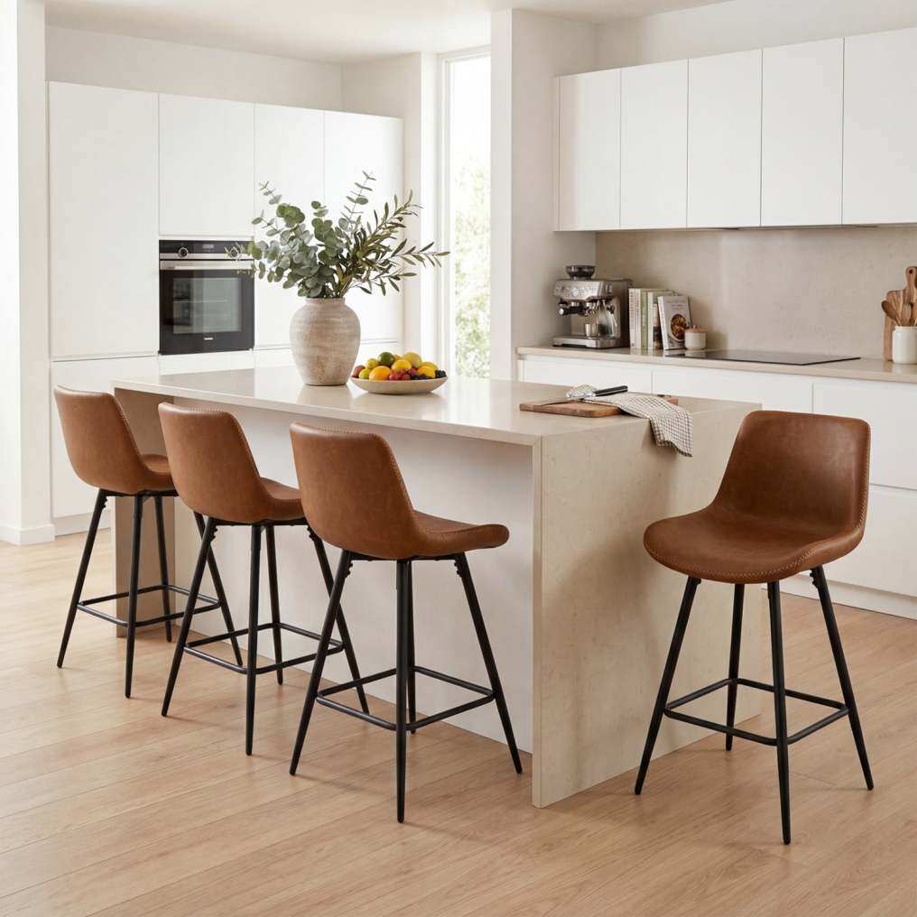Refined Faux Leather Finish: Wrapped in waterproof faux leather, these bar stools are designed to handle spills and splashes with less stress. The exquisite stitching adds a polished touch, giving the chair a stylish and elevated look.