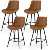 24 Inch Bar Stools Set of 4 with Backs and Footrests-Brown