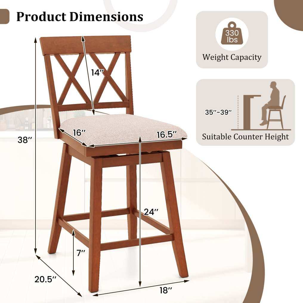 360° Swivel Convenience: Each bar stool features a smooth 360-degree swivel mechanism, allowing effortless rotation in any direction. This makes them ideal for interacting with guests or easily accessing items placed on your countertop.
