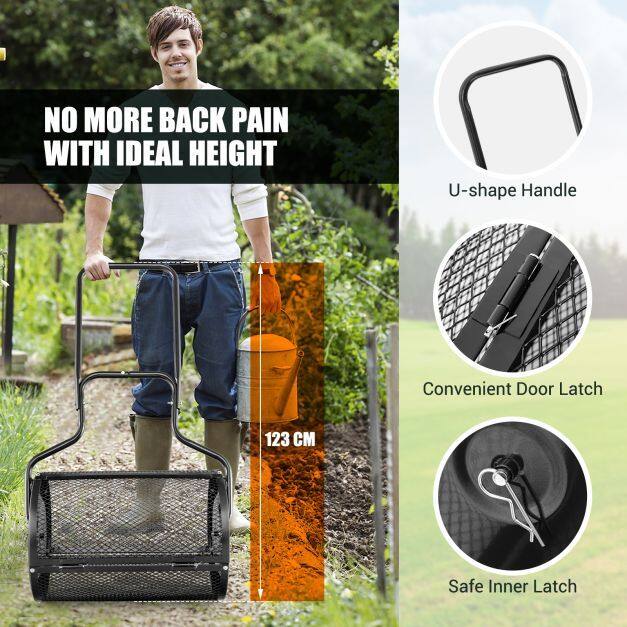 ● Secret to Even Spreading: The composter spreader takes lawn care to the next level with its intensive metal mesh, which will break up large chunks easily. Meanwhile, the durable metal mesh evenly and easily penetrates into the roots to promote nutrient absorption.