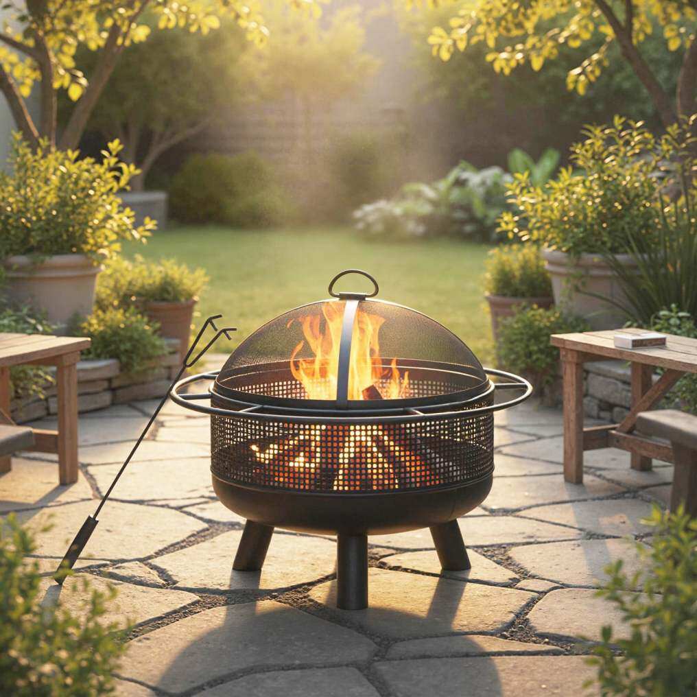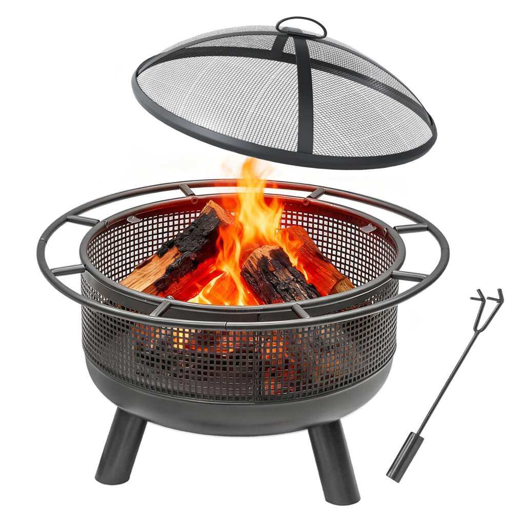 ● Enhanced Ventilated Design: The round firepit features a log grate and mesh design to improve airflow, ensuring a consistent and robust fire. Meanwhile, this intelligent construction not only boosts the fire's efficiency but also minimizes smoke.