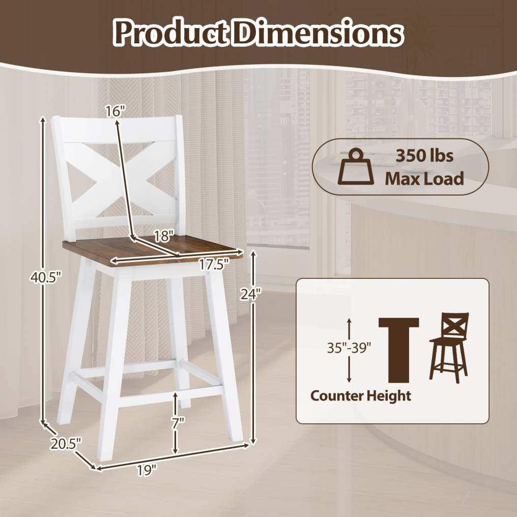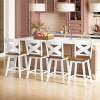 24" Rubberwood Swivel Barstools Set of 4 with Backrest and Large Seat-White