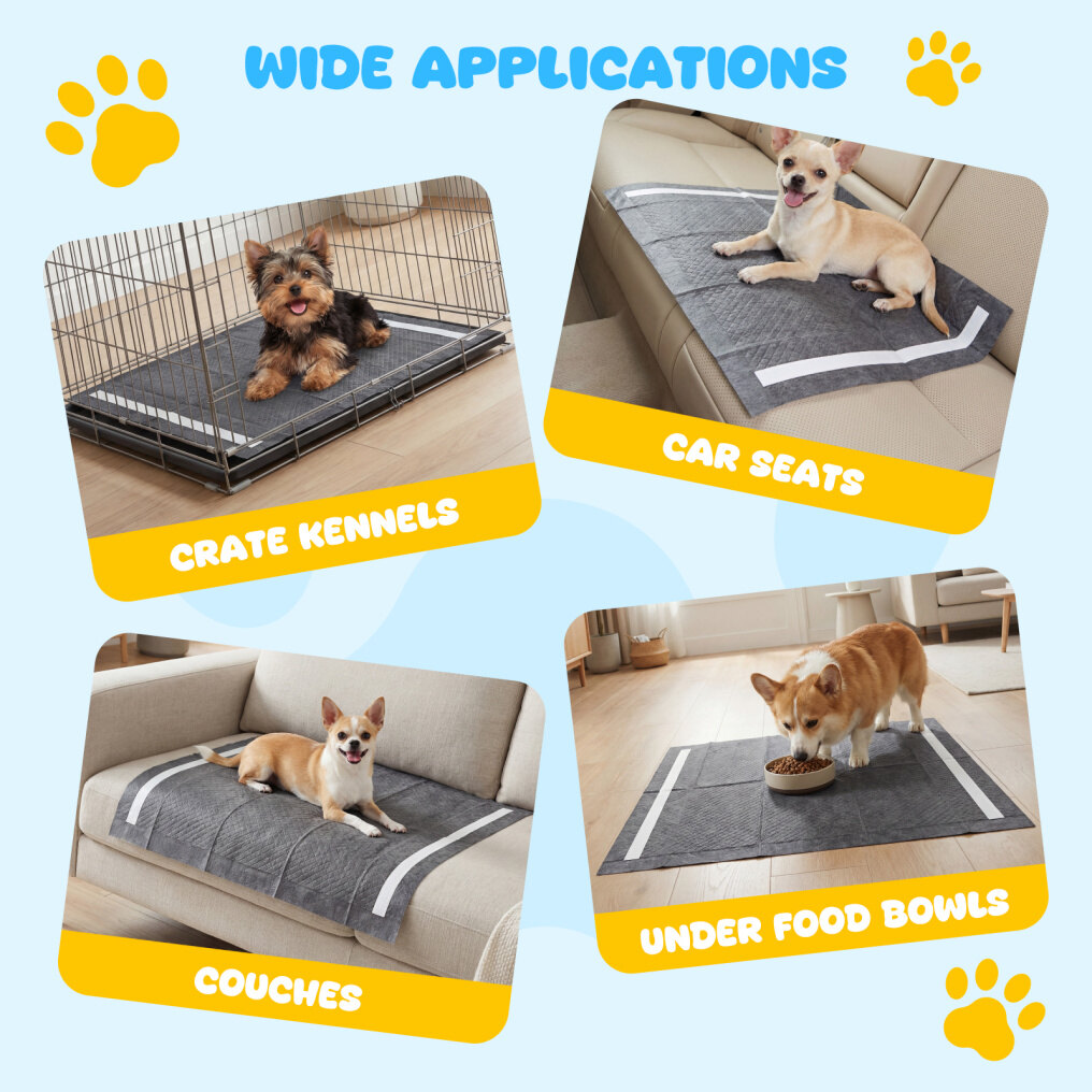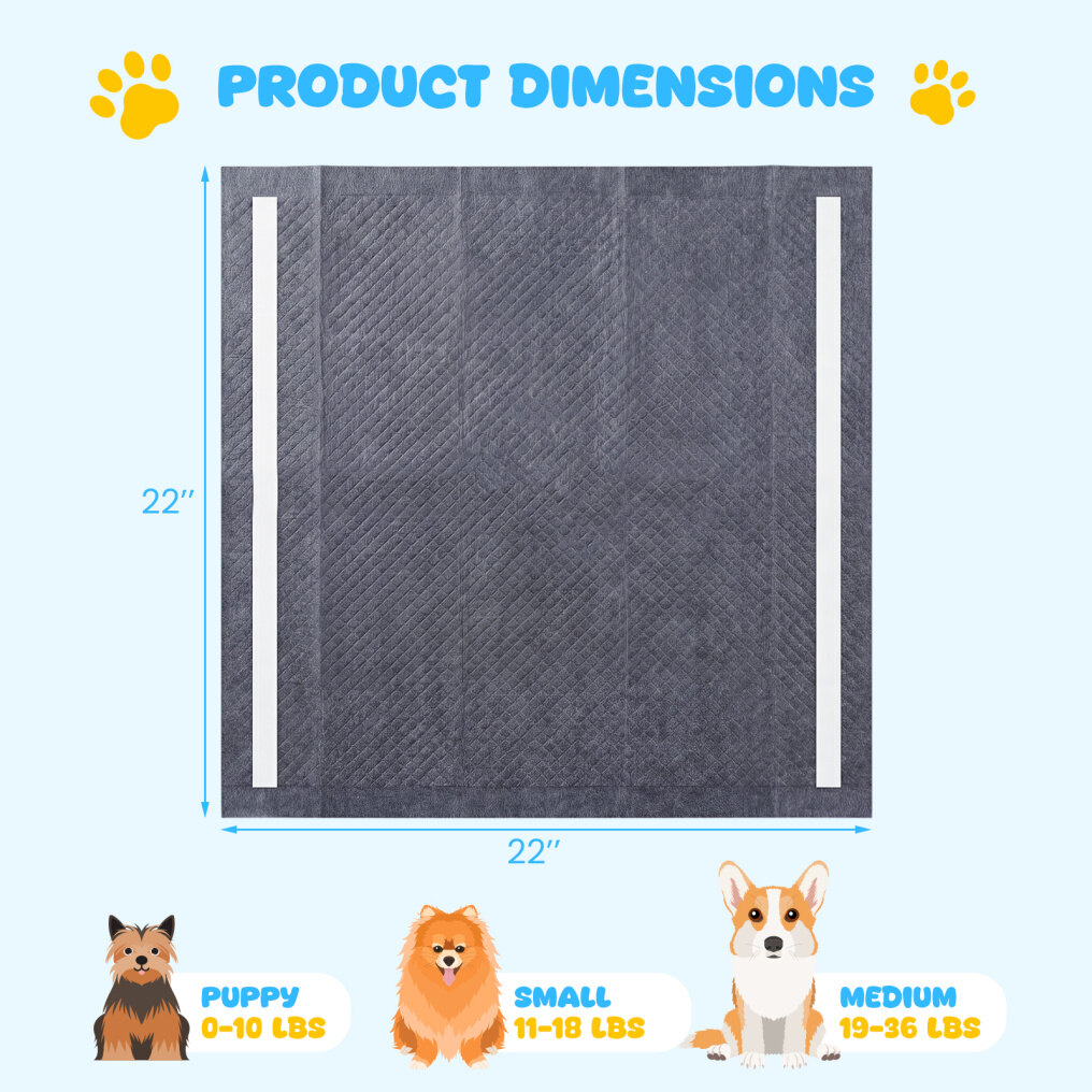 【Multi-Pet Versatility】This absorbent mat set includes 3 packs totaling 150 mats, each measuring 60 x 60 cm (L x W), providing ample coverage for small and medium-sized pets. These charcoal absorbent mats are also suitable for rabbits, cats, and other small animals.