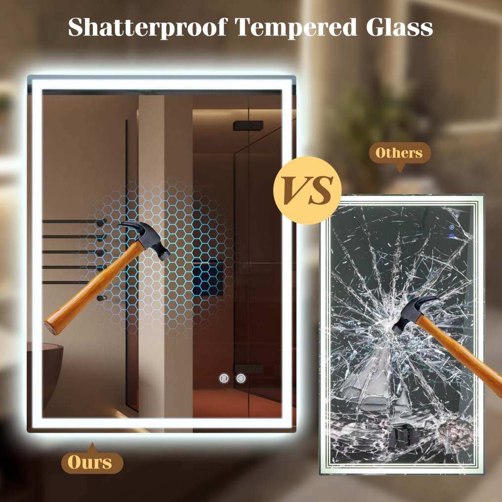 ● Shatterproof Tempered Glass: Crafted with heat-resistant and impact-resistant tempered glass, this bathroom vanity mirror is robust and built to last, offering safety and longevity in your bathroom.