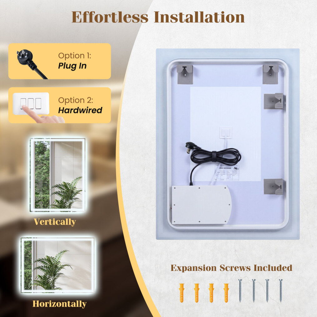 ● Flexible and Effortless Installation: Designed to be wall-mounted either vertically or horizontally with expansion screws included, this lighted mirror offers 2 power supply options: plug in or hardwired, making setup simple and adaptable to your space.