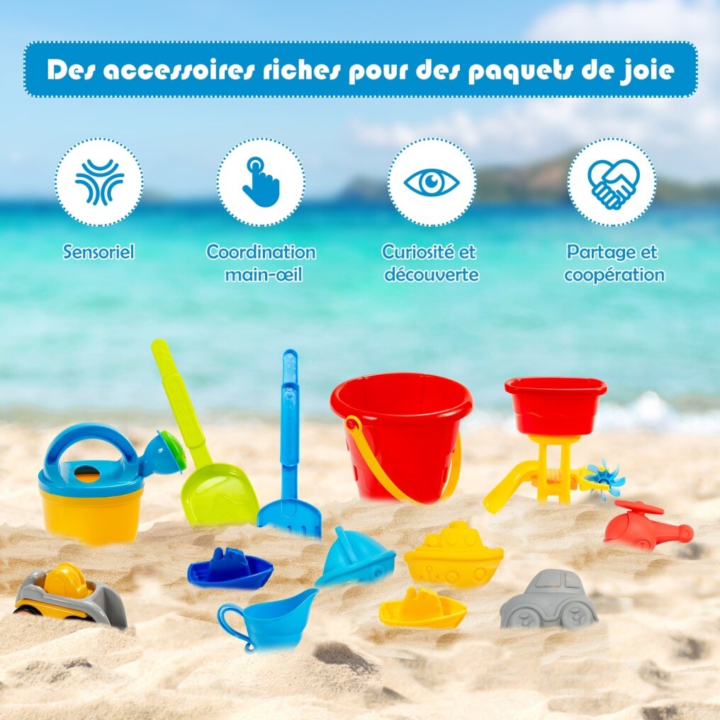 18 Pcs Accessories and Umbrella Hole: Coming with 18 pieces of toys, there are a host of possibilities to magnify the joy for kids. Coming with an umbrella hole (umbrella not included), it is able to expand the playground indoors and outdoors.