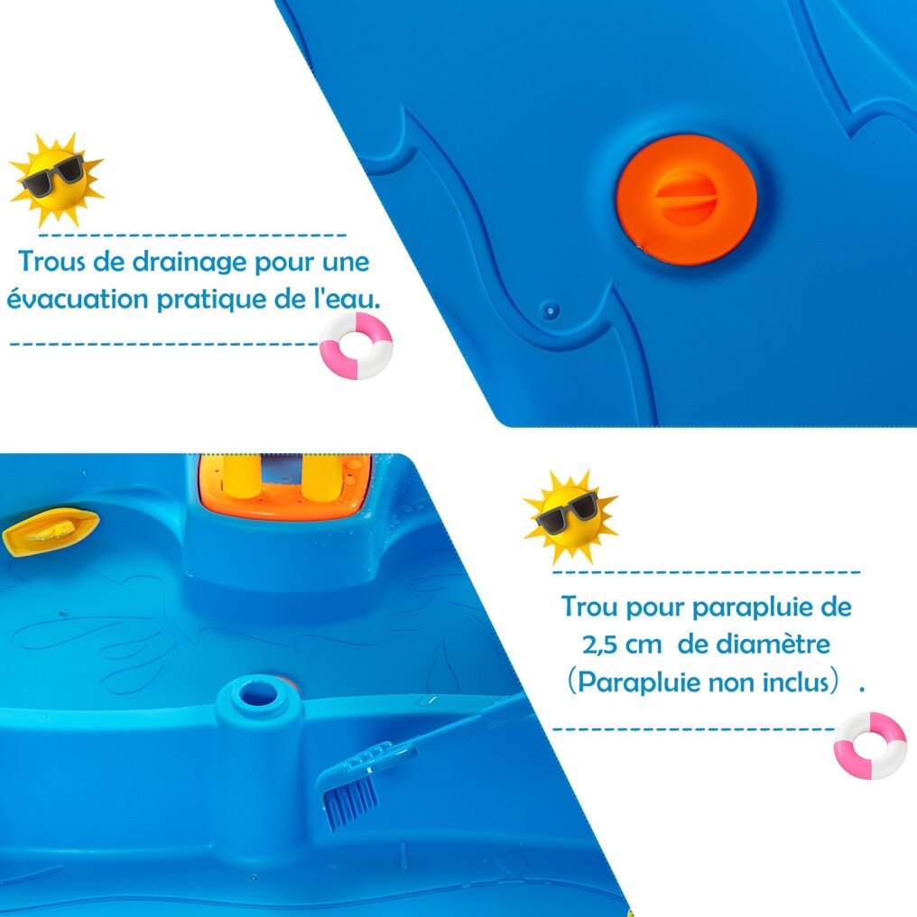 2-In-1 Activity Table: This beach table playset features 2 playing sections. Fill it with water, sand, pea shingle to create a versatile play station for your children. It is recommended for kids over 3 years old and an ideal gift to encourage them.