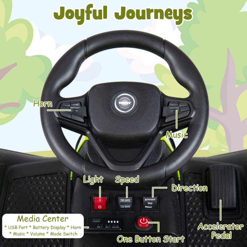 ● Dual Control Methods: Enjoy 2 ways to drive so everyone feels confident. Parents can guide the ride smoothly with the electric vehicle's 2.4G remote control, helping little drivers steer, cruise, and stay on track. When kids are ready, they can switch to manual control for hands-on driving practice and independence.