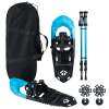 【Ultimate Traction Design】With a flexible pivot bar, the snowshoes allow for free and natural side-to-side movement. The heel rest and aggressive metal crampons make steep ascents easier, ensuring your safety and confidence on challenging terrain.
