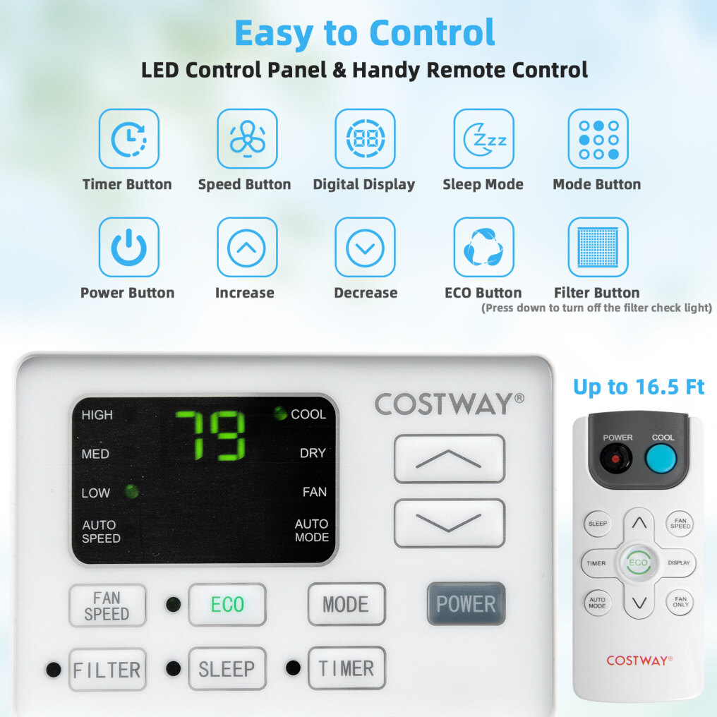 ● Easy Control and Low-Noise Operation: The easy-to-read LED control panel makes it easy to adjust and check the settings. And the handy remote control allows you to control this window AC from your comfortable bed or sofa. What's more, the smart 0.5-24 hour timing function and low-noise sleep mode (≤59dB) promises a quiet and cozy sleep for you.