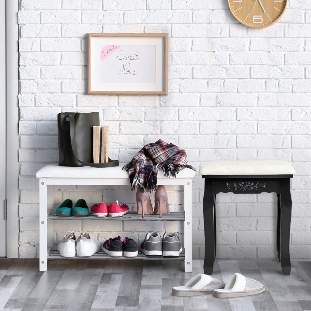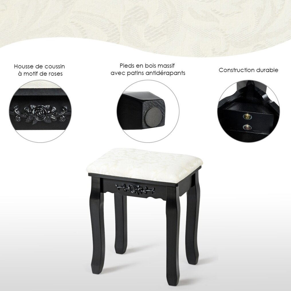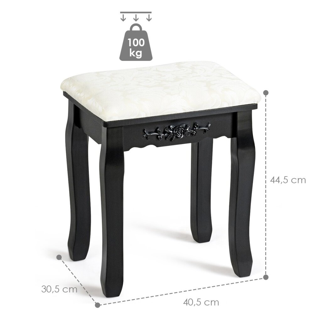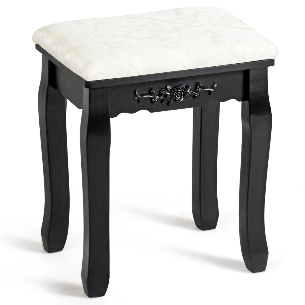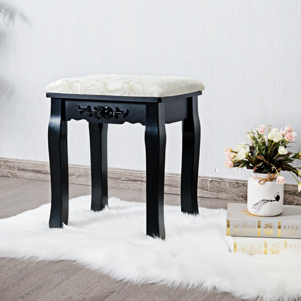 You can put all your clothes for the next working day on the stool or just sit comfortably in front of the vanity table to do your dressing. The slightly curved legs and the attractive cover with golden tones are made for a sophisticated look. With its simple and elegant design, it can be easily match with any rooms. Made of MDF and pine wood, this dressing stool is durable and sturdy.