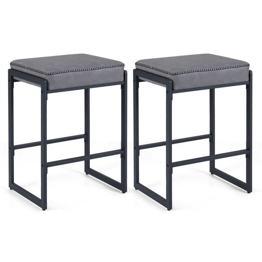 26 inch Bar Stools Set of 2 Counter Height Barstools with Faux Leather Upholstered Seat-Gray