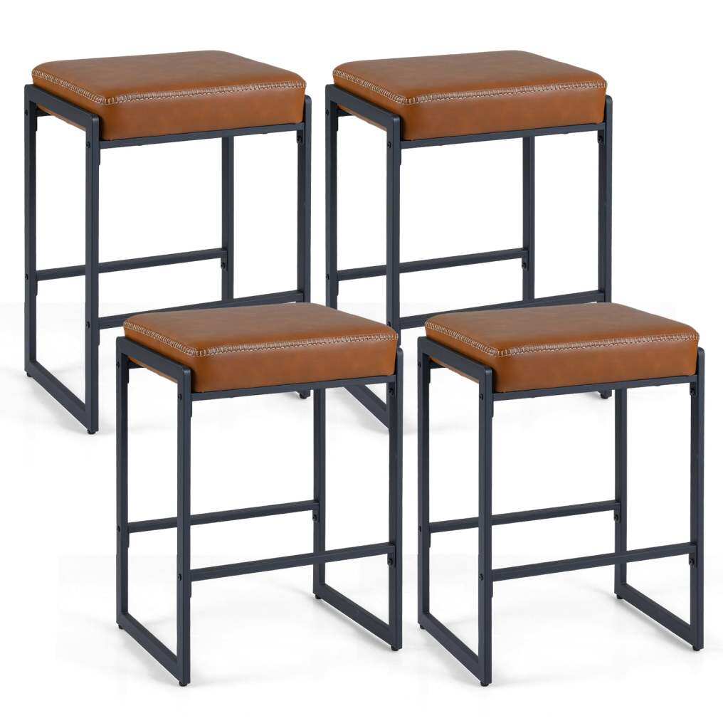 26 inch Bar Stools Set of 4 Counter Height Barstools with Faux Leather Upholstered Seat-Brown