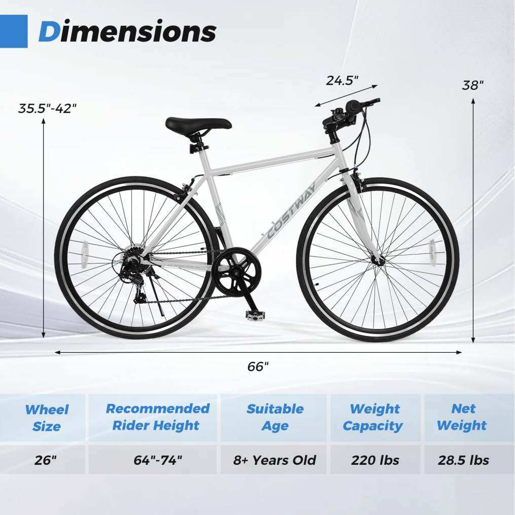 ● All-terrain Rubber Tires: Equipped with 26" rubber tires that are anti-slip, anti-wear and anti-puncture, this outdoor cycling bike ensures smooth rides on diverse surfaces, including the park, mountain beach, snow and more.