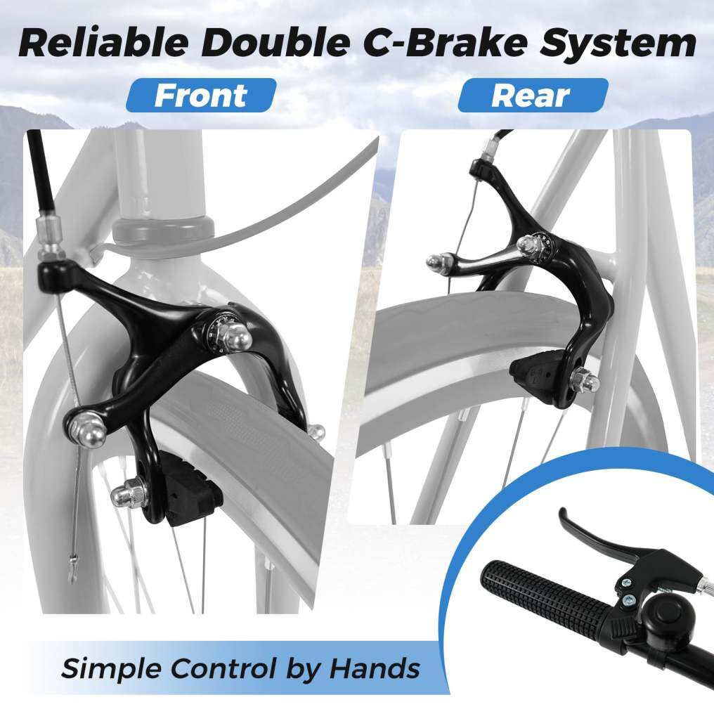 ● Reliable Double C-Brake System: Both the front and rear wheel of this mountain bicycle features a C-brake, offering outstanding durability and reliable stopping power for secure braking. And the brakes are easily controlled by hands.