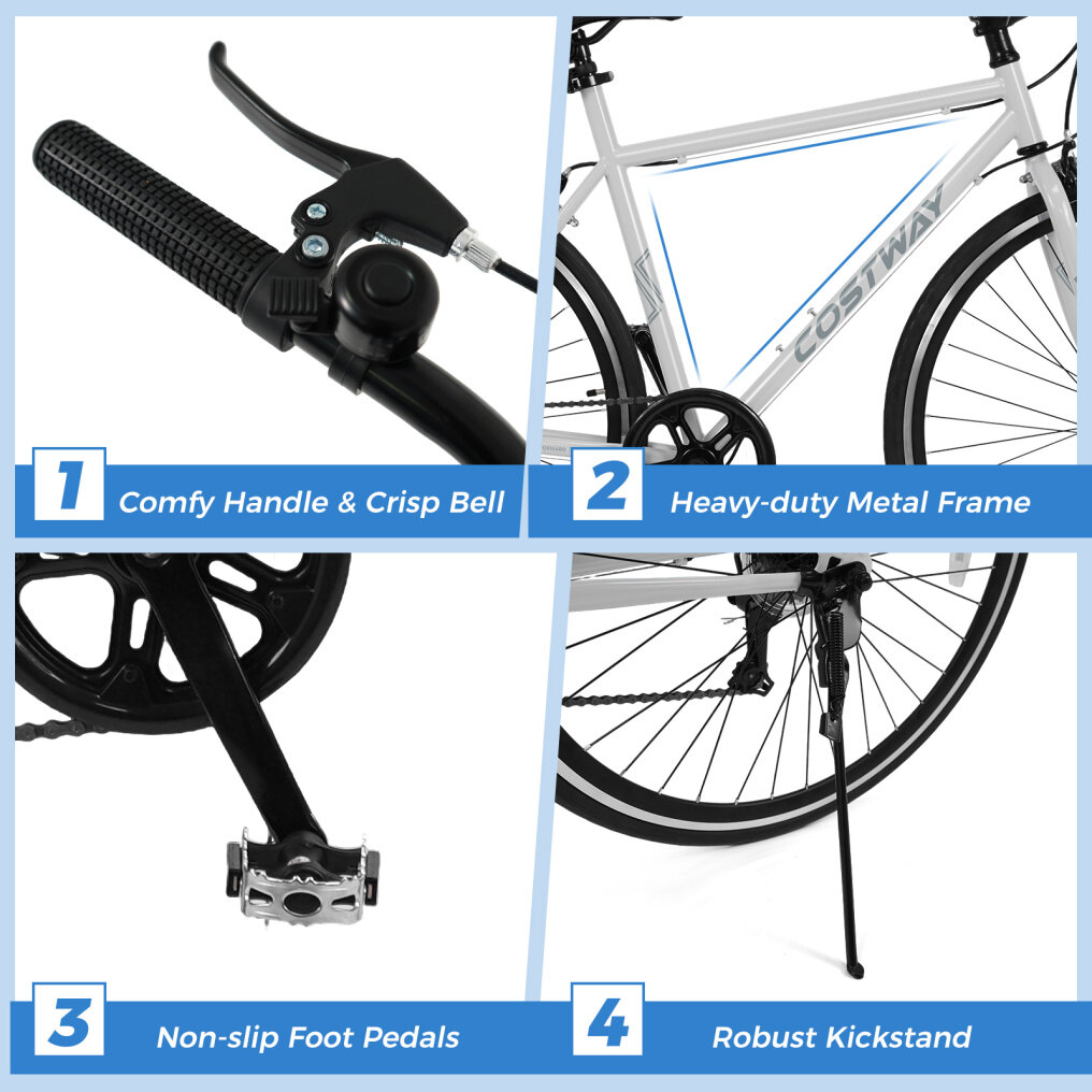 ● Enhanced Stability & Ready to Ride: Constructed of a heavy-duty metal frame, this mountain bike withstands rough use and rugged environments. The robust kickstand and non-slip foot pedals enhance safety and convenience. Besides, the 85% pre-assembled design ensures easy setup.