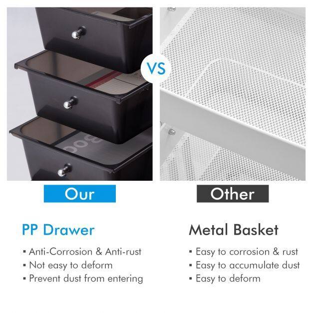 • What's more, it has two grip handles for convenient handling. In addition, the metal panel on the top can put things and have a good protection of the drawers. Don't hesitate to buy it now!