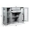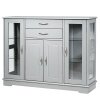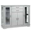 Do you need extra storage for your kitchen utensils? Our white wooden buffet server cabinet will be your good choice. Crafted with a durable wooden board and tampered glass, this kitchen storage cabinet with extra sturdiness and high strength for a long time using. Specially designed with 2 drawers, 3 cabinets and a spacious tabletop, the sideboard has roomy space to store all your things in parts and orderly. 3 cabinets with adjustable shelves offer great space to accommodate items of various sizes. What’s more, the side cabinets with see-through doors for favourite collections displaying. Our simple but stylish buffet cabinet can be paired with different decoration styles, and put in the kitchen, dining room, and entryway.
