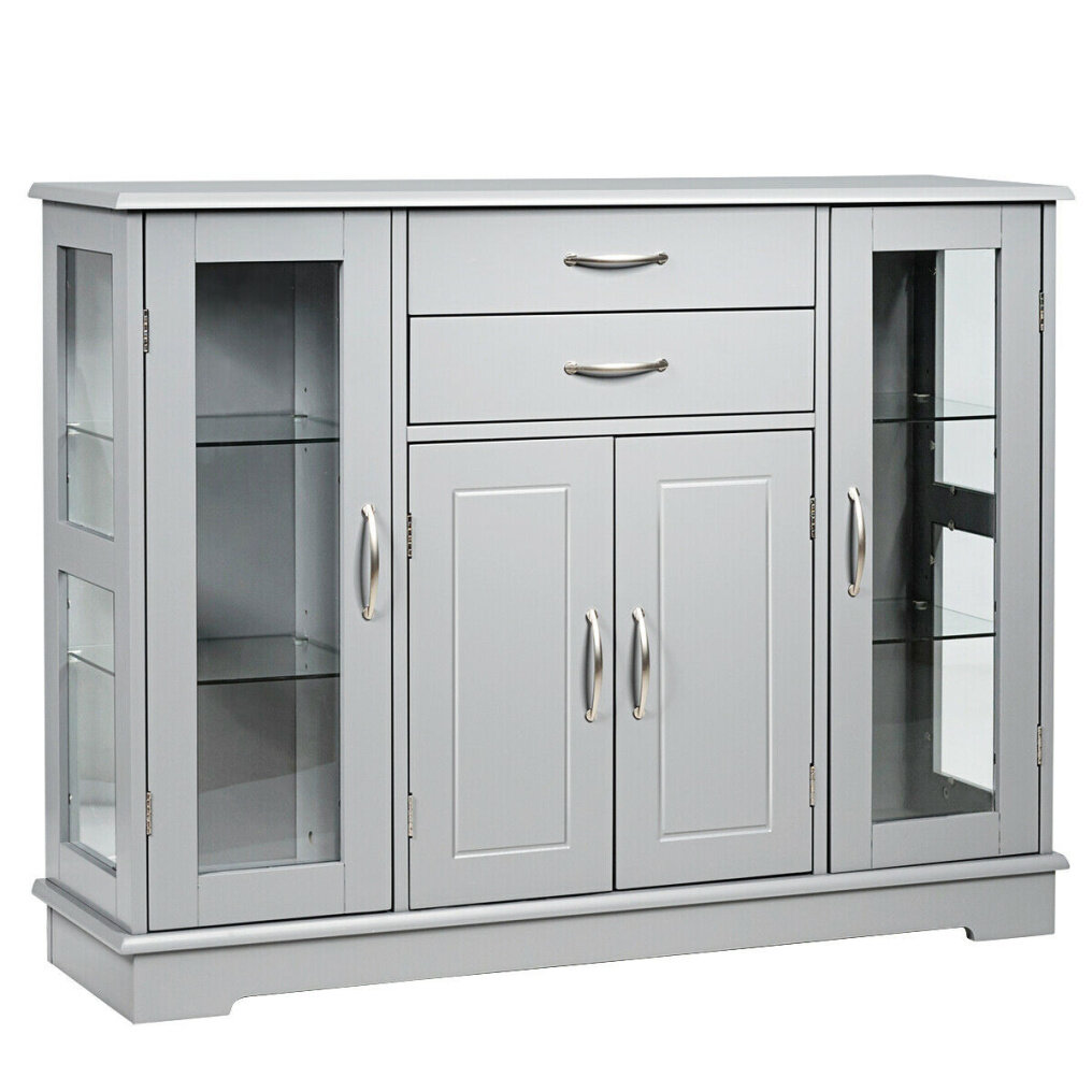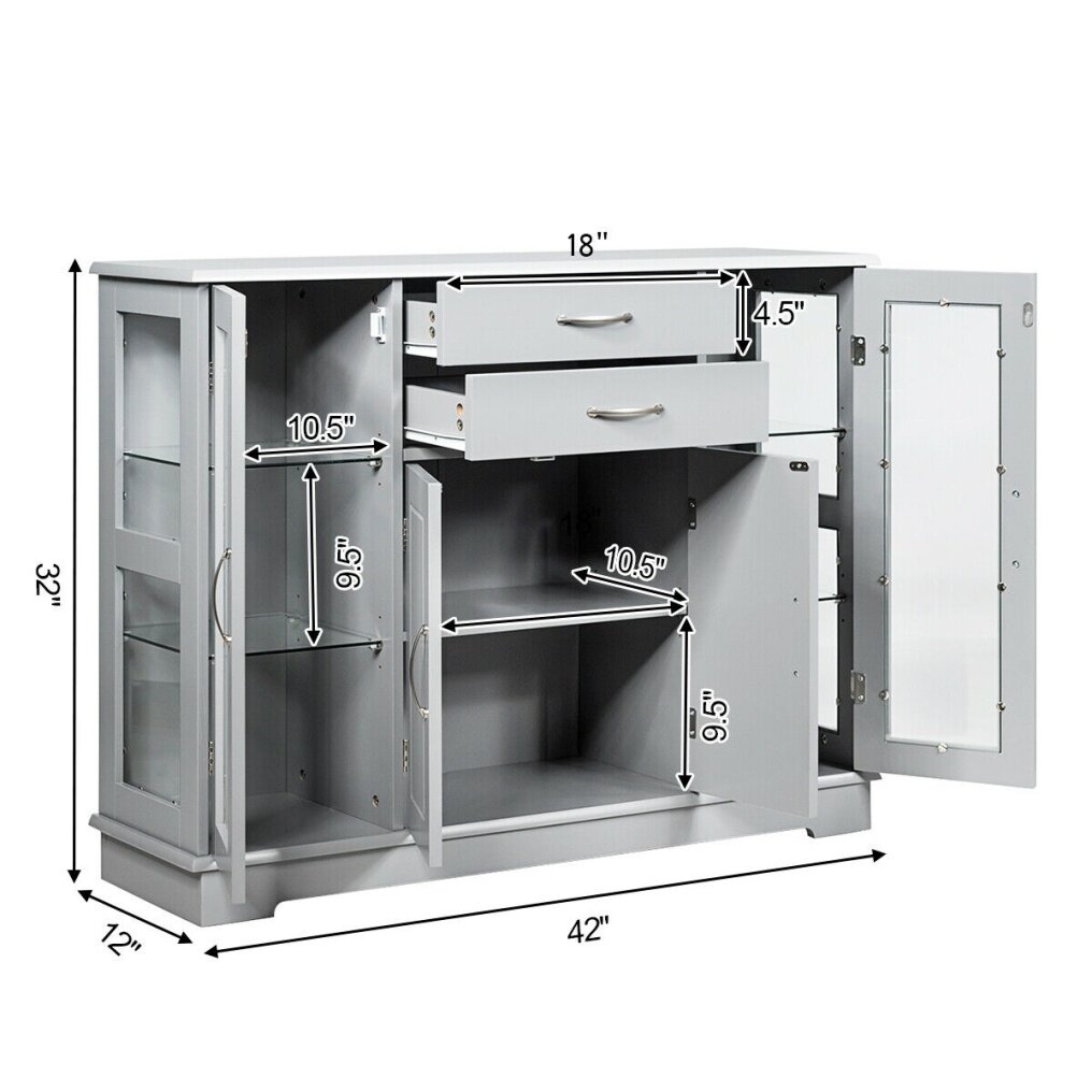 Ample Storage Space: This sideboard is designed with 2 drawers and 3 large cabinets, making up ample storage room for you to put all supplies. You can classify things into parts for better storage. 2 sided cabinets with clear glass doors help you to display and a spacious tabletop to access things easily.