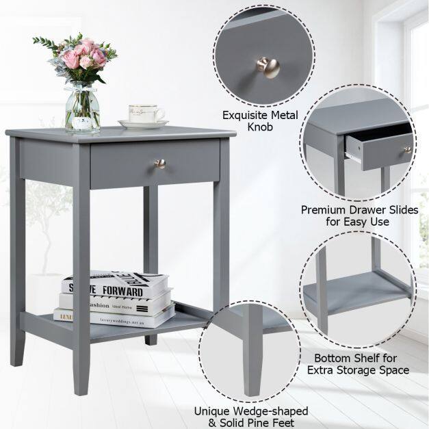 Smooth slides and tiny handle of this table are designed for convenient use. Combined with stylish appearance and great practicality, the side table is a great addition to your home. As for the quality, made of premium MDF board with NC paint, this simple yet solid table allows you to use it for a long time. Moreover, 4 solid pine wood legs enhance stability without any wobbliness.