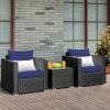 If you want to drink coffee or have a break with your friend in your garden, patio, or yard, this 3-piece outdoor rattan furniture set is a good choice for you.