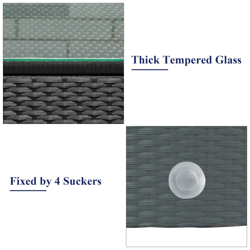 Made of sturdy steel and premium rattan, the sofa set is sturdy and durable which can be used for a long time. Comes with a tempered glass top table, not only can you place some drinks or snacks on the hard tabletop to take conveniently but also some decors like vase can be put on the tabletop. The sofas are equipped with a back and seat cushion which will give you excellent comfort. And the cover of the cushion has a zipper for removing and rinsing easily.