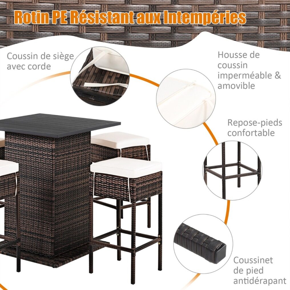 5 Pieces Patio Rattan Bar Table Stool Set Hidden Storage Shelf Cushioned-White Sourcing Wholesale Supplier/Distributor | B2B Marketplace