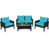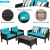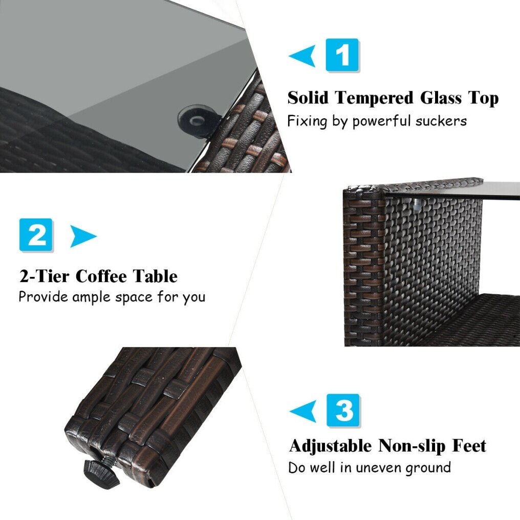 ● Attractive Appearance: Equipped with 1 Loveseat, 2 chairs, and 1 coffee table, it is made up of a solid steel frame and PE wicker with red sponge cushions ensuring a long lifetime. Its stylish armrests and moderate-reclining backrest double the comfort for you to totally relax and make it more eye-catching.