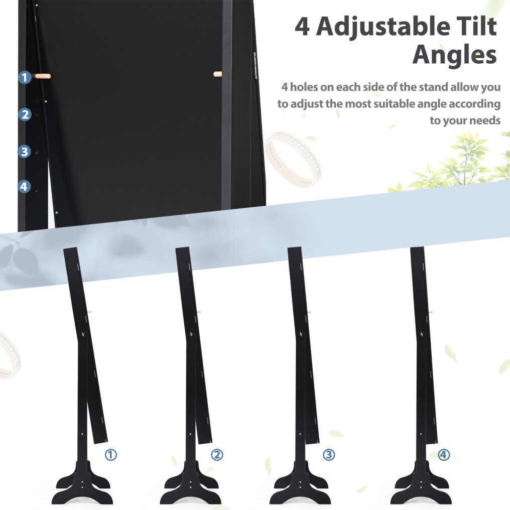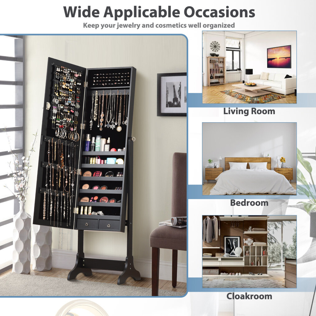 Full size mirror is convenient for trying your jewelry and clothes on. It is specially designed for your valuables help your jewelry in an organized manner and prevents them from getting tangled. Lockable design ensures the safety of your jewelry. Features four angle tilting positions so that you can choose your favorite angle according to you needs.