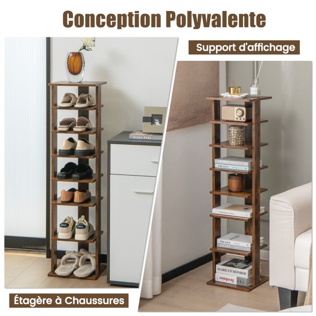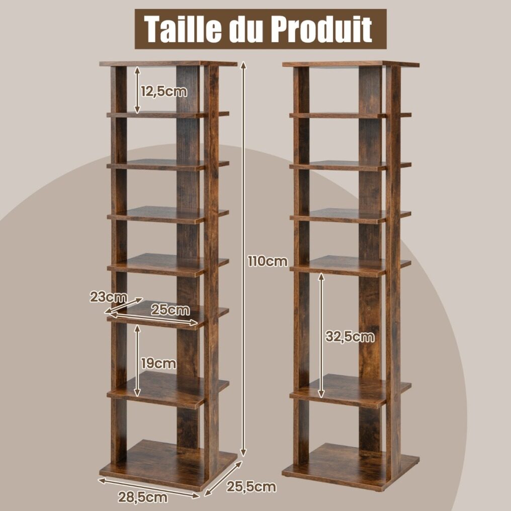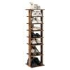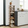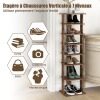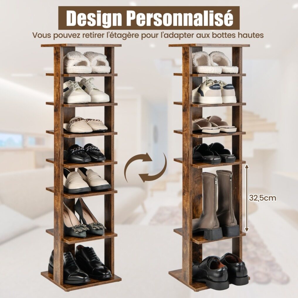 ● 7-Tier Neat Storage: This shoe tower provides you with 7 vertical shoe storage shelves. The upper shelves are for slippers, sneaker kinds of shoes, while the lower shelves have more room for high heels and high shoes. And you can detach one board to create widened spaces for high boots.
