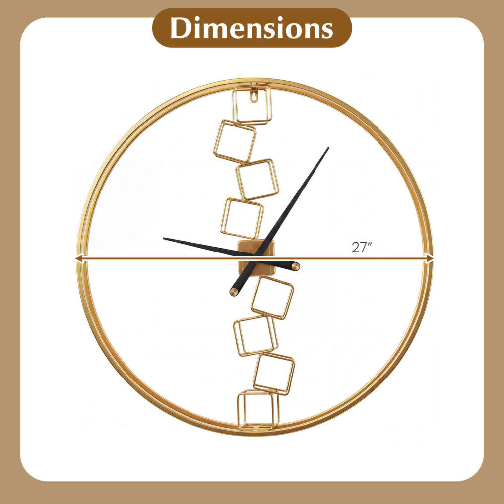 ● Effortless Time Reading: Enjoy the convenience of a large, easy-to-read clock that measures an impressive 27" in diameter and features delicate hands. This thoughtful design allows you to tell time at a quick glance.