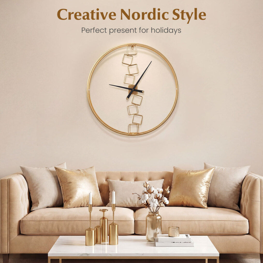 ● Nordic Style Design: Elevate your home's ambiance with this decorative wall clock featuring Nordic style blocks encased in a sleek metal frame. It inspires harmony and a sense of renewal in your space.