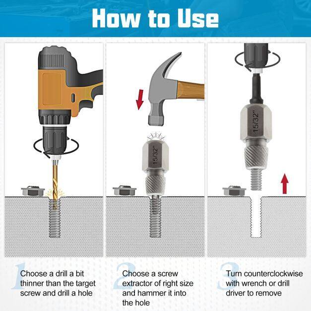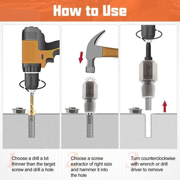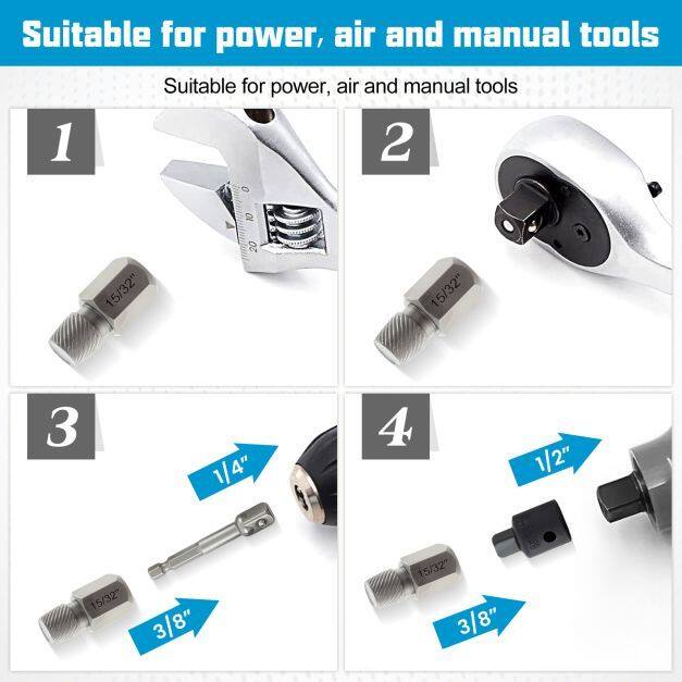 Improved Connection: This dual-head tool set features a standard 3/8" square drive for compatibility. It differs from traditional screw extractors in that it can be attached directly to a wrench, eliminating the need for intermediate connection sleeves.