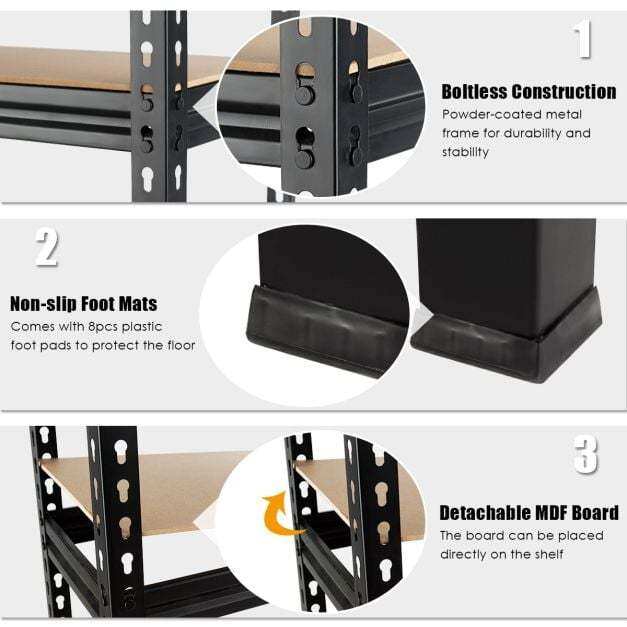 - Sturdy metal frame and the boards are strong enough to shoulder your stuffs