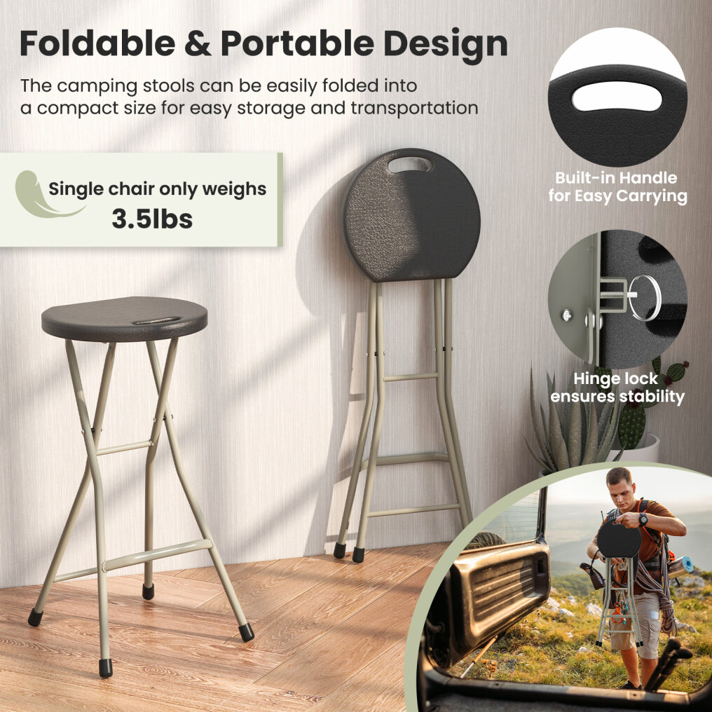 ● Portable and Foldable Design: The foldable stool perfectly fits in a narrow place under the sofa, in the corner or in the trunk of your car. With an ultra light weight of lbs, you can carry the stool to anywhere you need it with ease. What's more, the built-in handle allows for more convenient transportation.