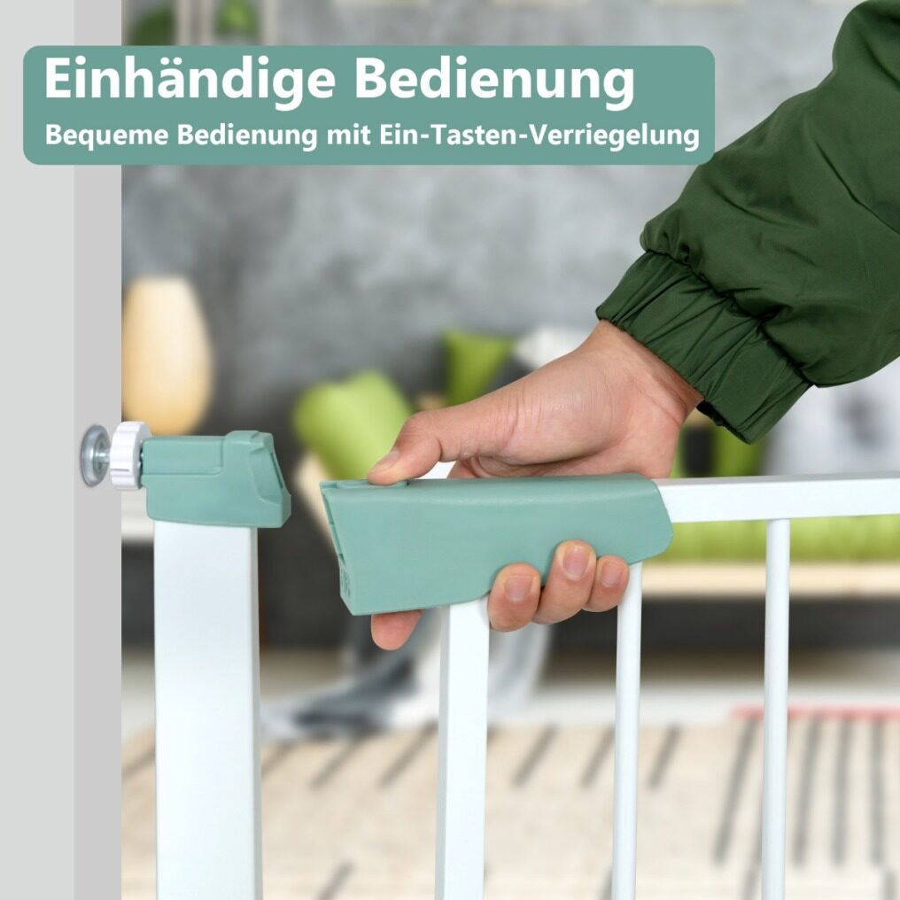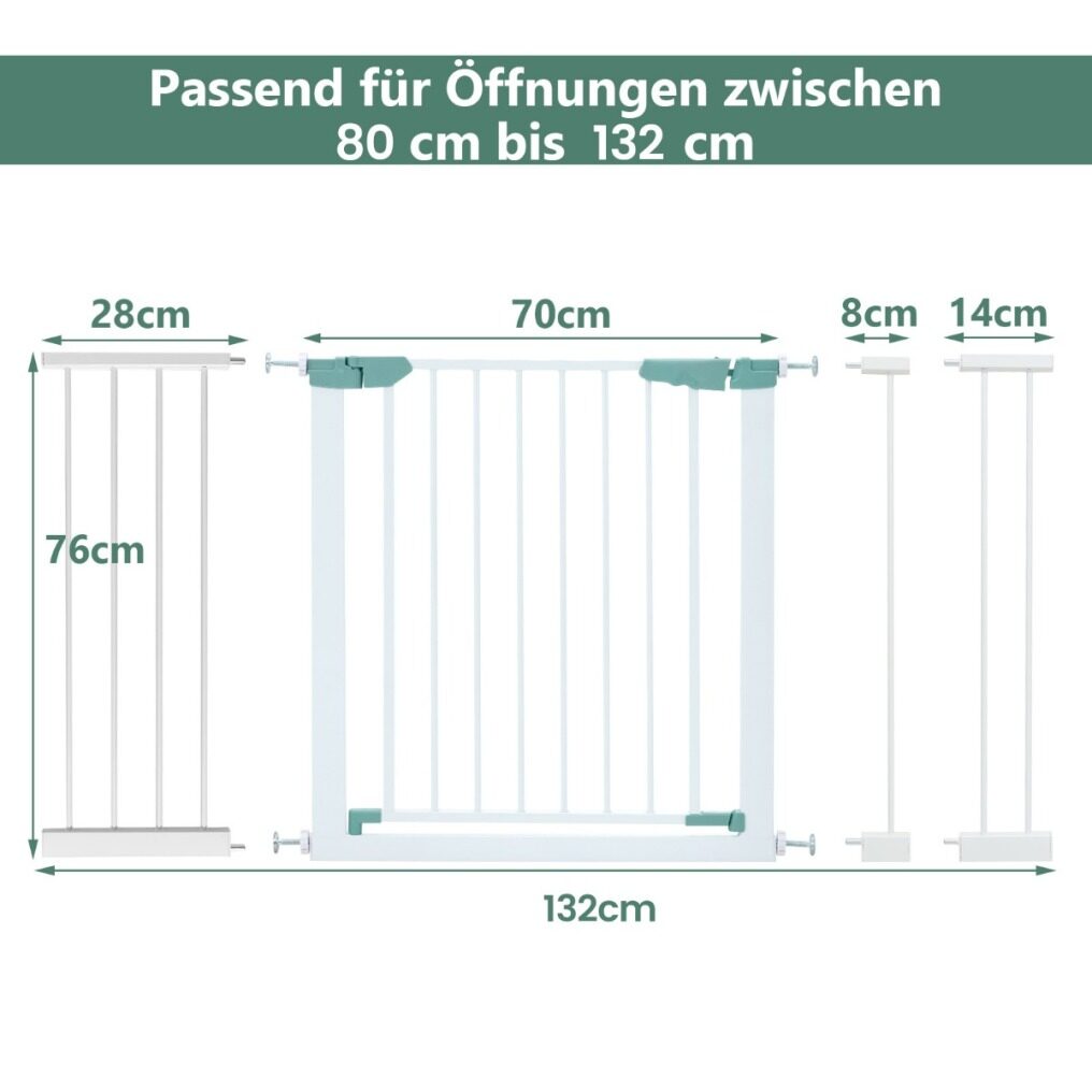 Extra-Wide Gate: Expands to fit openings between 70-119 cm wide with 3 extensions and reaches to 76 cm height, baby safety gate is ideal for doorways, hallways and stairways to protect children and small pets.