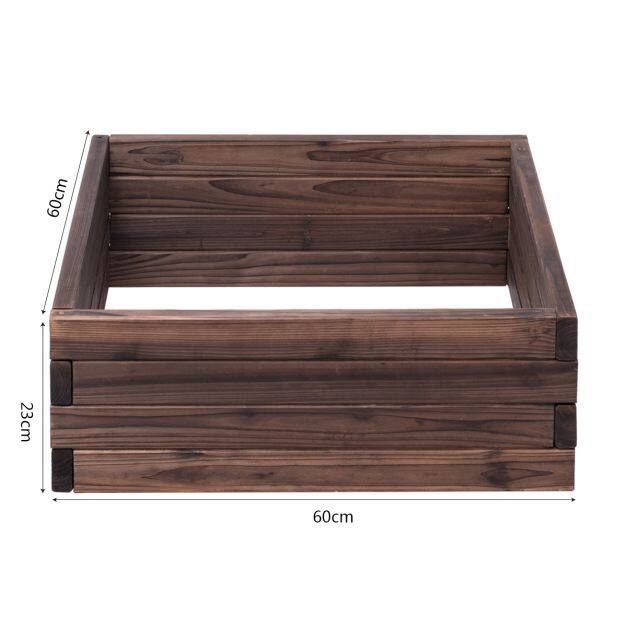 This is our brand new raised garden bed. This garden bed is perfect for growing your plants and vegetables. The 60 cm length and 60 cm width of the bed will give you ample space to place your plants and help them grow proficiently. The bed is made of 2.5 cm thick wood that is built for all year using. The small frame allows you to use this bed on your patio, lawn, or garden. Fill it up with soil (not included) and start planting your garden this season. Don't hesitate to buy it now!