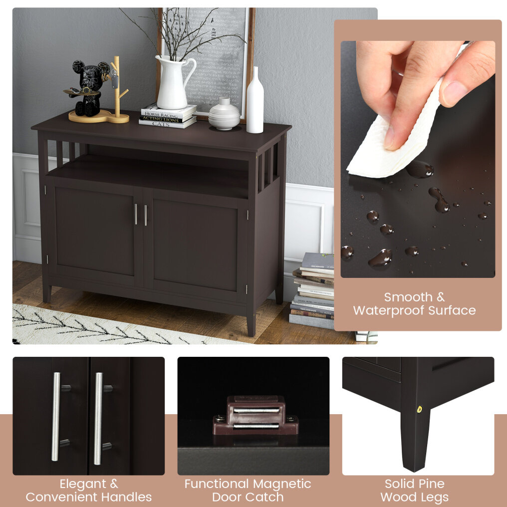 2-Door Sideboard with Open Shelf & 5-Position Shelf for Kitchen & Dining Room-Brown