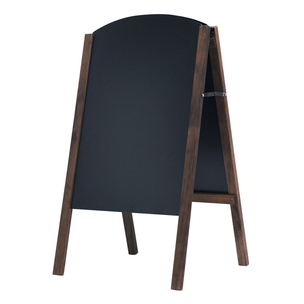 With solid pine wood legs, and a durable MDF chalkboard, this sandwich board sign will withstand winds and last for years. Featuring 2 sides makes this menu chalkboard incredibly convenient for switching between “open” and “closed” signs. Dual blackboards provide ample writing space for promotional messages. If you want to make changes to your sidewalk sign or simply want to touch up the artwork on your display, you can wipe the sign with a damp cloth. You can start creating new ideas right away! You can use liquid chalk markers as well as standard chalks on this board. These rustic sidewalk signs are designed for many occasions, enhancing the look of any event or business. Suitable for business, restaurants and weddings, retail stores, restaurants or cafes to advertise happy hours, promotional items!