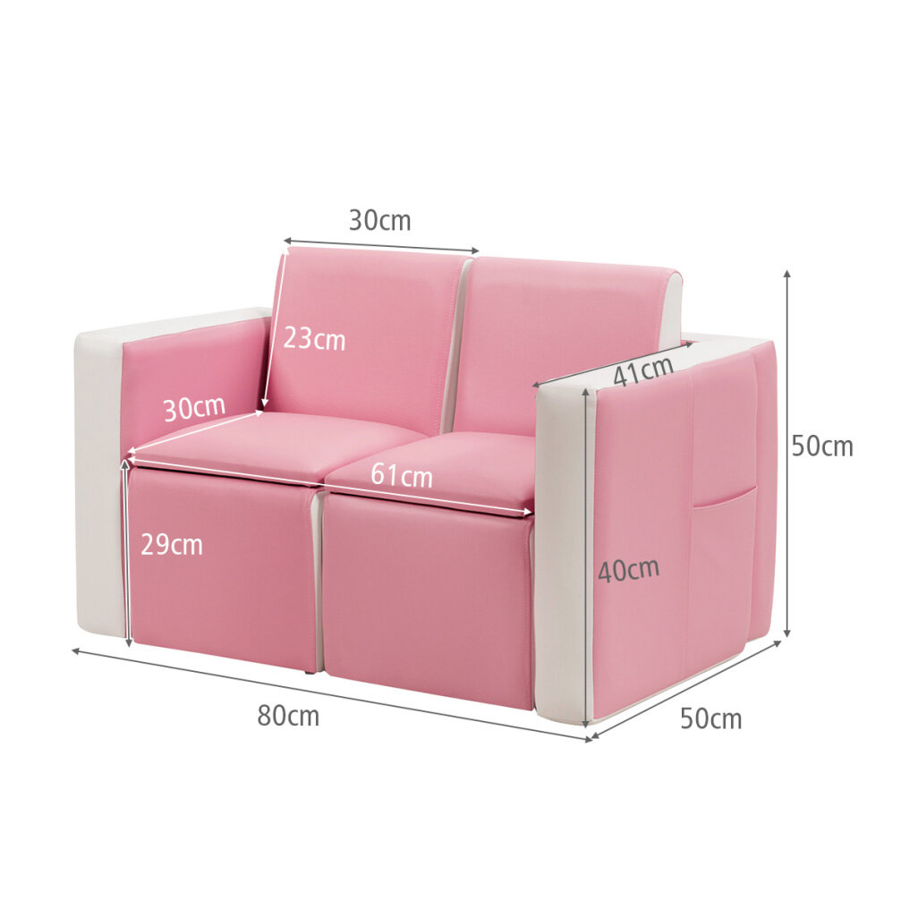 2-IN-1 Design: Purchase one and get two pieces of furniture for your kids! It can be used as a 2-seat armchair and separated into two chairs and a table for kids. Developing children’s thinking ability by changing different shapes, which will bring a lot of fun to little ones.