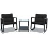 Great Outdoor Addition: Featuring a modern design, this patio conversation set matches different decoration styles and adds elegance to where you place them. 2 rocking chairs and 1 coffee table let you spend leisure time with your friend in the backyard, poolside, deck, etc.