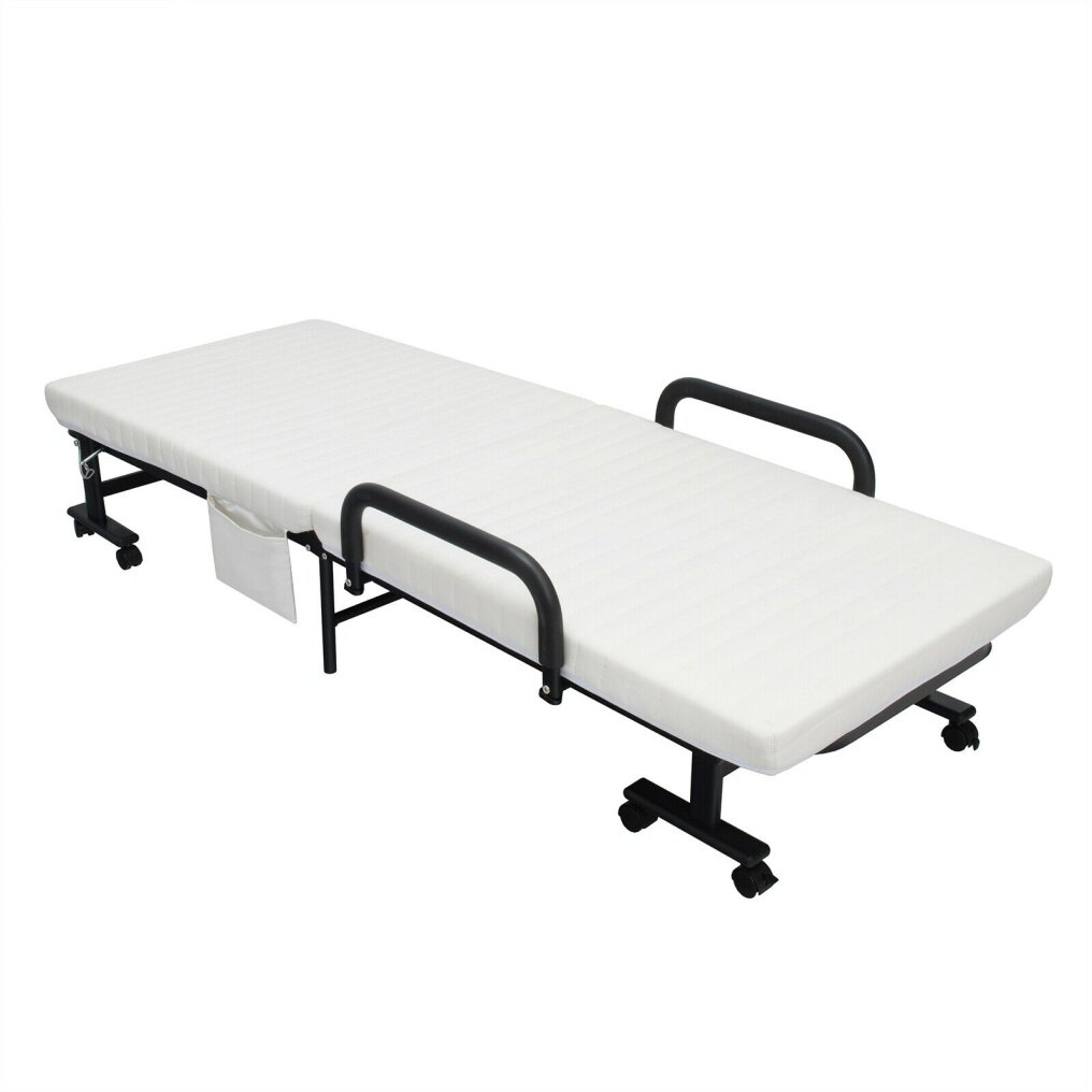 Flexible Wheels & Side Pockets: There are 8 flexible wheels, 4 of which are lockable. The practical wheels help you move the bed more easily, lockable wheels offer safe protection. Additionally, the folding bed has a side storage bag, you can put some daily necessities such as books and remote control in it, which can greatly facilitate your life.