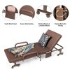 Comes with a sturdy steel frame and a high-elastic sponge mattress, our folding single bed can provide a better sleep experience for you. This folding bed is adjustable, 6 different positions are designed to meet your different needs. A thick mattress with a removable cover is comfortable and easy to clean. 8 flexible wheels make it easy for you to move the single bed around your home. Besides, there is a side bag to store books and other items. This versatile folding bed is portable, which is suitable for outdoor and indoor use. The convertible lounge is also a perfect choice for those who want to have better sleep in the office or provide a sleeping place for guests. Don't hesitate to buy it!