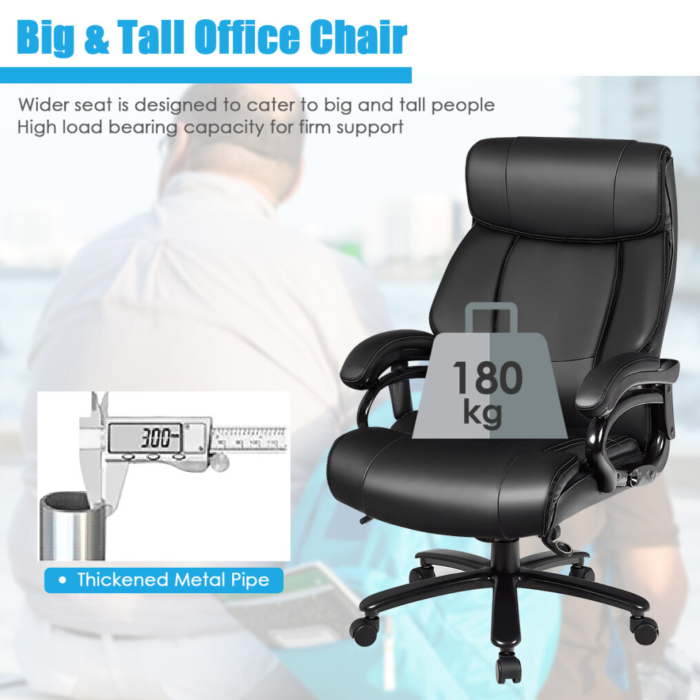 Sturdy Rolling Chair with Strong Load-bearing: Featuring integrated steel construction with the heavy duty base, the large executive chair boasts excellent durability and stability, bearing weight up to 180 kg. The 360 degrees wheels make it easy to move around quietly and smoothly, giving you steady movement and a lot of convenience.